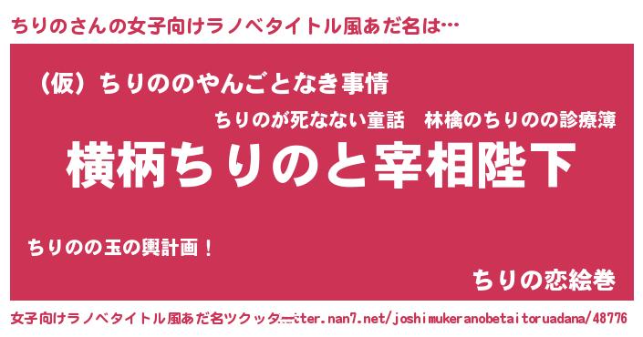 | 男性向けラノベタイトル風あだ名 | 『ちりのに滅ぼされるだけの簡単なお仕事です』 |