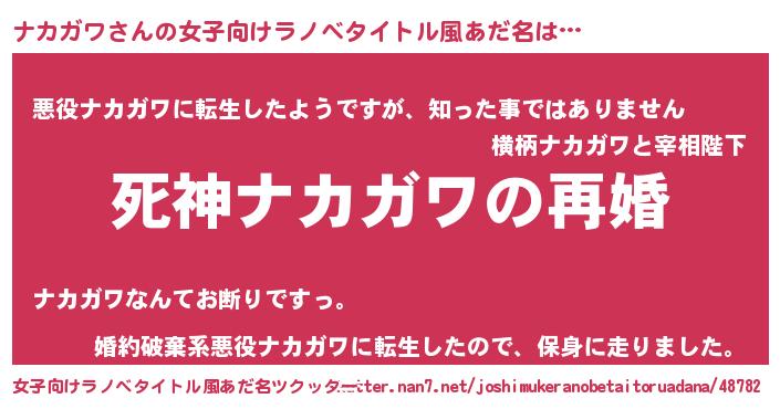 | 男性向けラノベタイトル風あだ名 | 『ノーゲーム・ノーナカガワ』 |