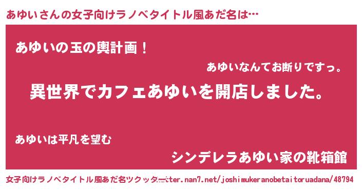 | ヒーロー風カッコイイあだ名 | 『ネオアユイ』『究極戦士アユイ』 |