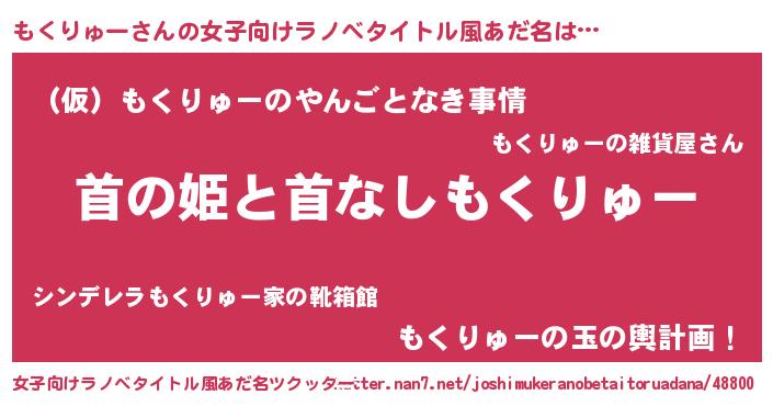 | 男性向けラノベタイトル風あだ名 | 『はたらくもくりゅーさま!』 |