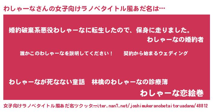 | 胡散臭い通販商品みたいなあだ名 | 『億万長者になれるブレスレット…その名も「わしゃーな」』 |