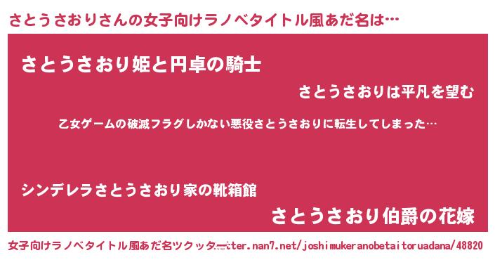 | 胡散臭い通販商品みたいなあだ名 | 『世界中を虜にした100年もののヴィンテージワイン…その名も「さとうさおり」』 |