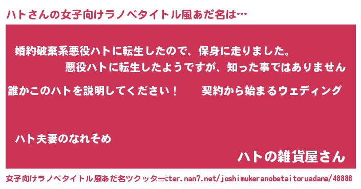 | 2回繰り返すあだ名 | 『ハトハト』『よちよち』『ハハトト』 |