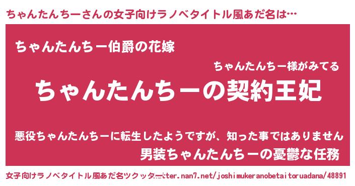 | 胡散臭い通販商品みたいなあだ名 | 『来世でも幸せになれる健康食品…その名も「ちゃんたんちー」』 |