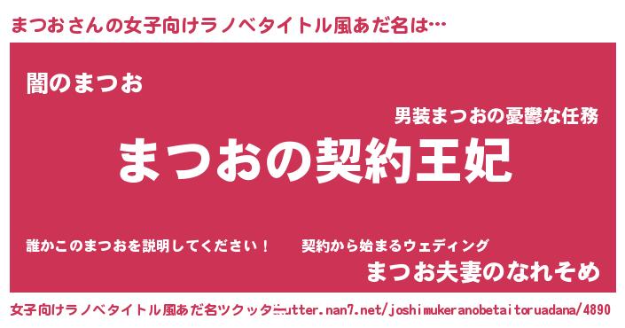 | 男性向けラノベタイトル風あだ名 | 『まつおという概念が存在しない退屈な世界 』 |