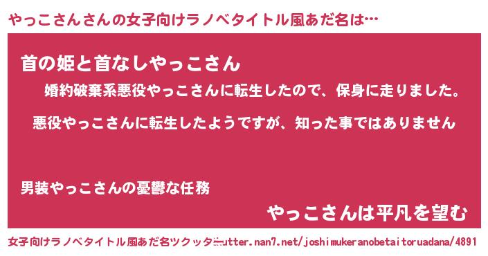 | 意味不明あだ名 | 『住所不定無職やっこさん(14歳)』 |