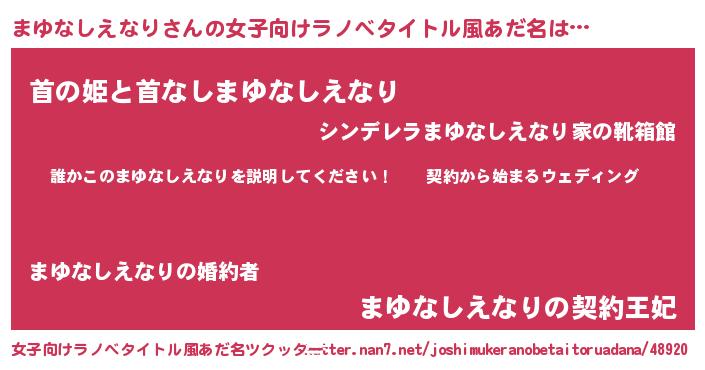 | 胡散臭い通販商品みたいなあだ名 | 『億万長者になれる水晶球…その名も「まゆなしえなり」』 |