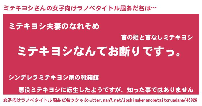| ヘコむあだ名 | 『ミテにー』『ミテキヨシ(小並感)』 |