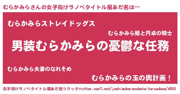 | 男性向けラノベタイトル風あだ名 | 『冴えないむらかみらの育てかた』 |