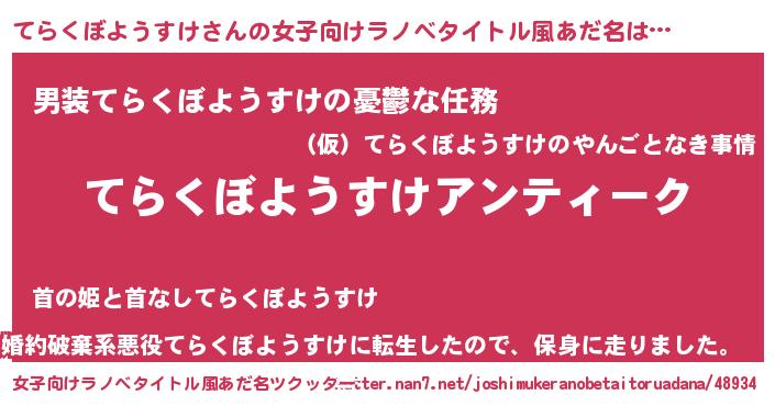 | 意味不明あだ名 | 『自称てらくぼようすけ』 |