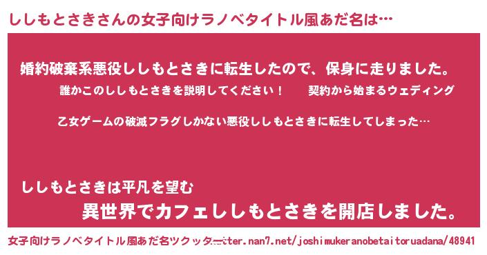 | 意味不明あだ名 | 『住所不定無職ししもとさき(84歳)』 |