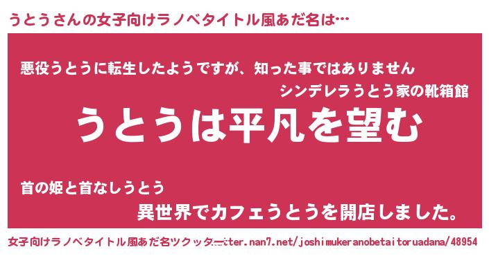 | 男性向けラノベタイトル風あだ名 | 『ダンジョンにうとうを求めるのは間違っているだろうか』 |