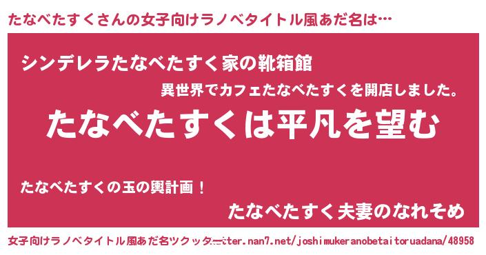 | 男性向けラノベタイトル風あだ名 | 『ダンジョンにたなべたすくを求めるのは間違っているだろうか』 |