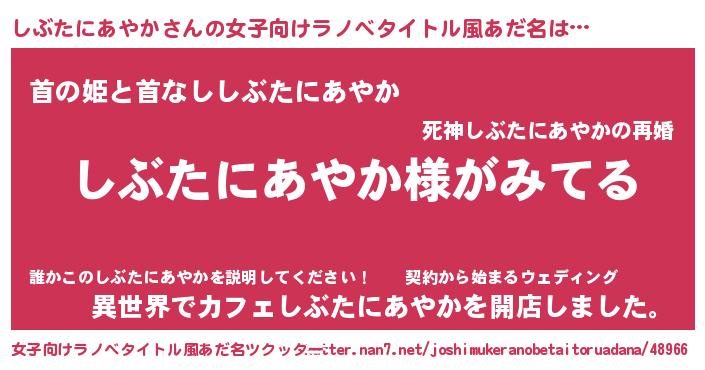 | 意味不明あだ名 | 『とにかく怪しいしぶたにあやか』 |