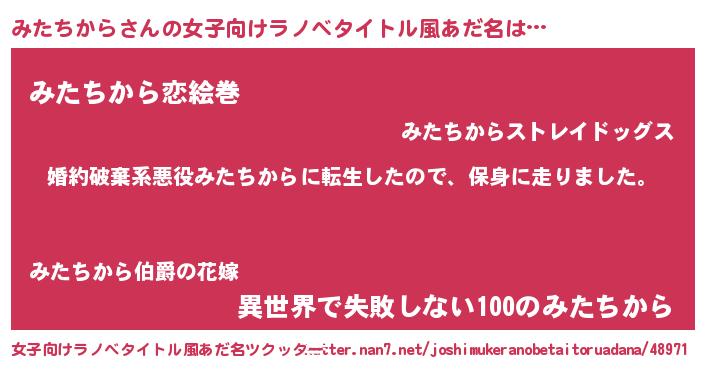| ヘコむあだ名 | 『みたちから(笑)』『豆乳』『みたを』 |