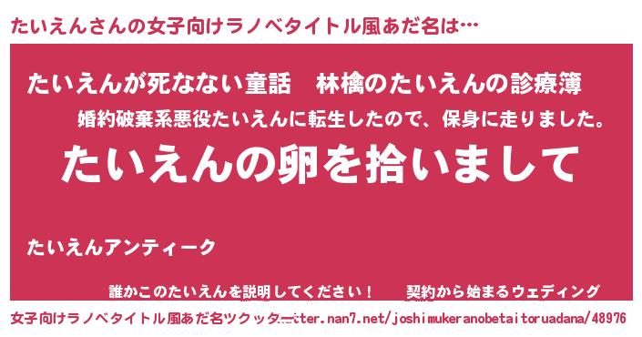 | 男性向けラノベタイトル風あだ名 | 『ダンジョンにたいえんを求めるのは間違っているだろうか』 |