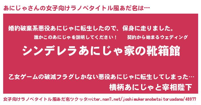 | 胡散臭い通販商品みたいなあだ名 | 『モテモテ間違いなしブレスレット…その名も「あにじゃ」』 |