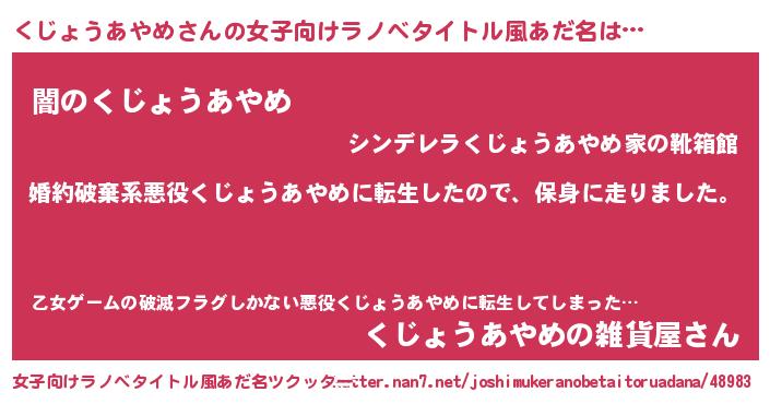 | 男性向けラノベタイトル風あだ名 | 『転生したらくじょうあやめだった件』 |