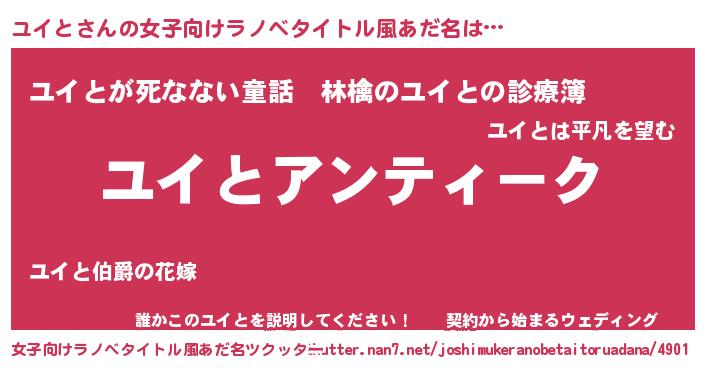 | 意味不明あだ名 | 『自称ユイと』『住所不定無職ユイと(85歳)』 |