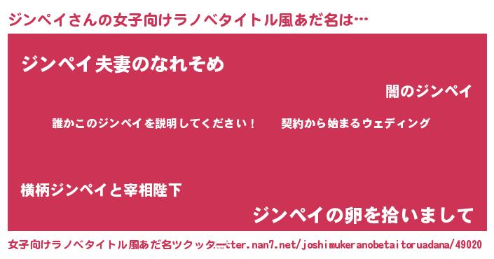 | 胡散臭い通販商品みたいなあだ名 | 『億万長者になれる霊験あらたかなお札…その名も「ジンペイ」』 |