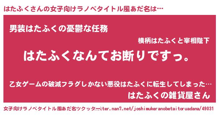 | 肩書あだ名 | 『はたふく総統』『はたふく艦長』 |