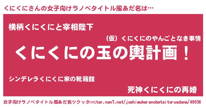 | 男性向けラノベタイトル風あだ名 | 『くにくに~年齢イコール彼女いない歴の魔法使い~』 |