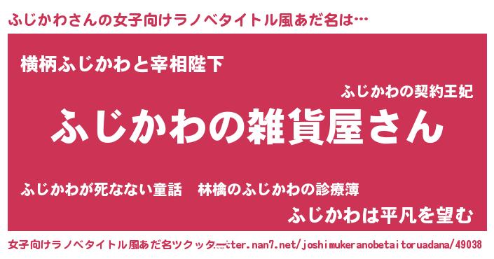 | 男性向けラノベタイトル風あだ名 | 『やはりふじかわの青春ラブコメはまちがっている 』 |