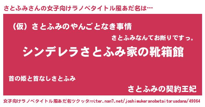 | 男性向けラノベタイトル風あだ名 | 『緋弾のサトフミ』『さとふみの憂鬱』 |