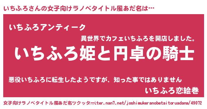 | 男性向けラノベタイトル風あだ名 | 『いちふろの憂鬱』 |
