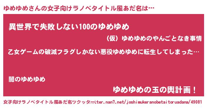 | 男性向けラノベタイトル風あだ名 | 『この素晴らしい世界にゆめゆめを!』 |