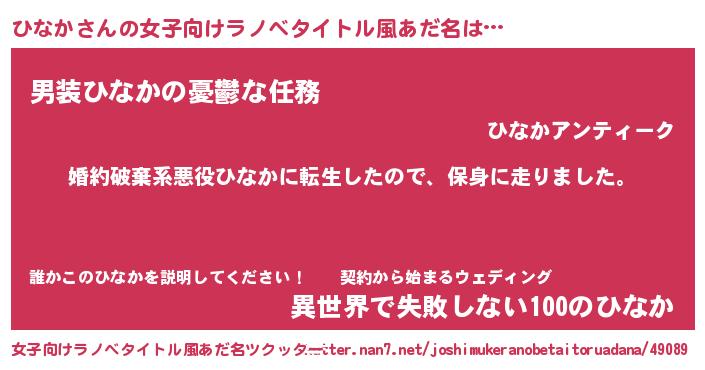 | ヒーロー風カッコイイあだ名 | 『ネオヒナカ』『最強戦士ヒナカ』 |