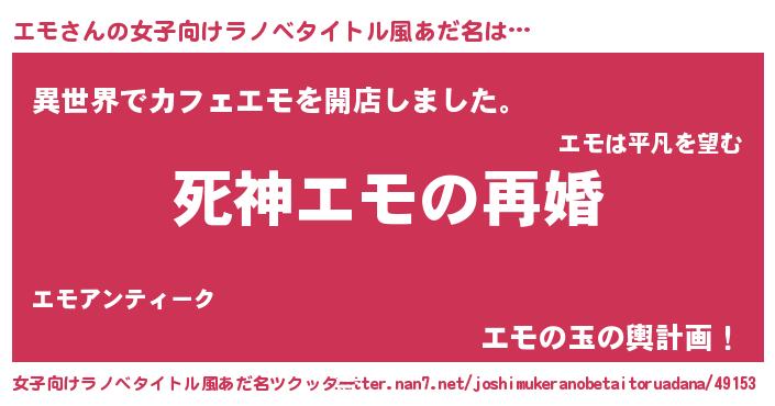 | 男性向けラノベタイトル風あだ名 | 『ノーゲーム・ノーエモ』 |