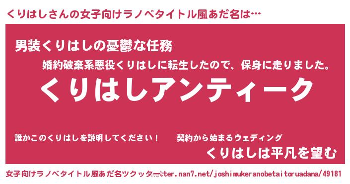 | ヒーロー風カッコイイあだ名 | 『サイバー戦士クリハシ』『幻影騎士クリ』 |