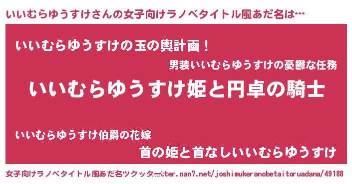 | 男性向けラノベタイトル風あだ名 | 『いいむらゆうすけの憂鬱』 |