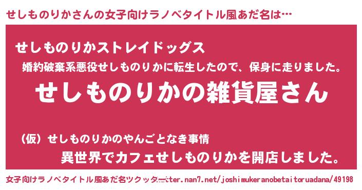| 意味不明あだ名 | 『せしものりかフォーエバー』 |