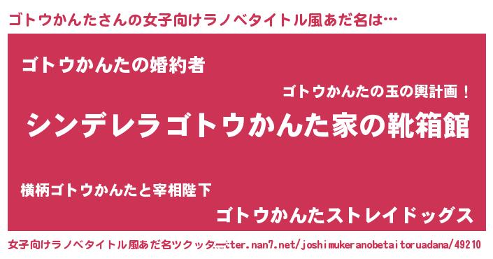 | 男性向けラノベタイトル風あだ名 | 『冴えないゴトウかんたの育てかた』 |
