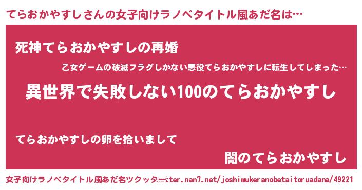 | 男性向けラノベタイトル風あだ名 | 『てらおかやすしという概念が存在しない退屈な世界 』 |