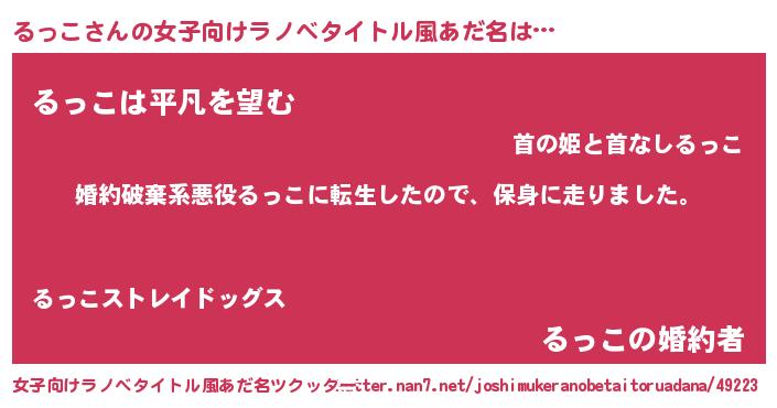 | 男性向けラノベタイトル風あだ名 | 『ルッコスレイヤー』 |