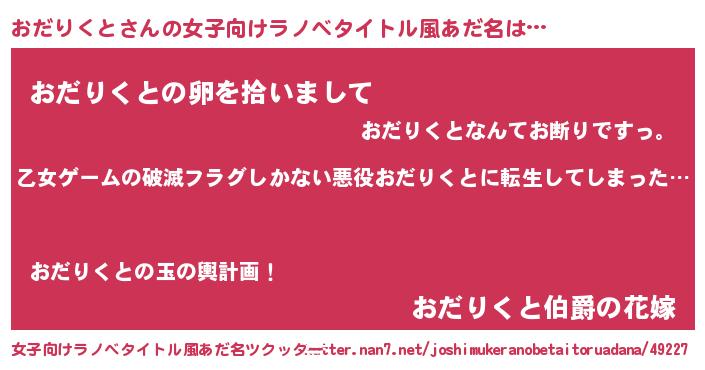 | 意味不明あだ名 | 『住所不定無職おだりくと(95歳)』 |
