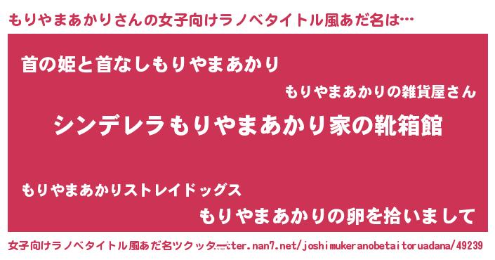| 意味不明あだ名 | 『とにかく怪しいもりやまあかり』 |