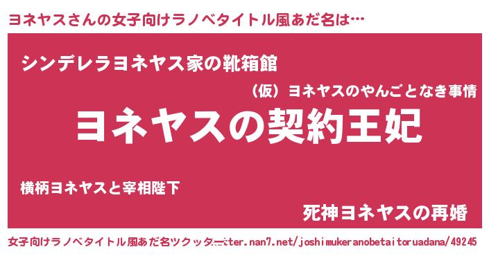 | 男性向けラノベタイトル風あだ名 | 『ヨネヤスという概念が存在しない退屈な世界 』 |