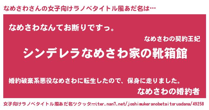 | 意味不明あだ名 | 『自称なめさわ』『なめさわフォーエバー』 |