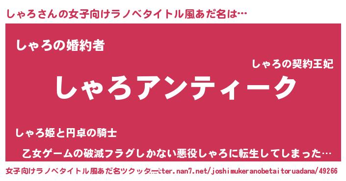 | 意味不明あだ名 | 『自称しゃろ』『しゃろフォーエバー』 |