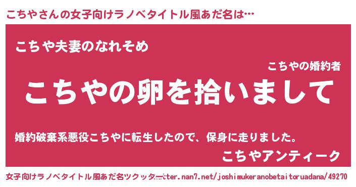 | 男性向けラノベタイトル風あだ名 | 『ダンジョンにこちやを求めるのは間違っているだろうか』 |