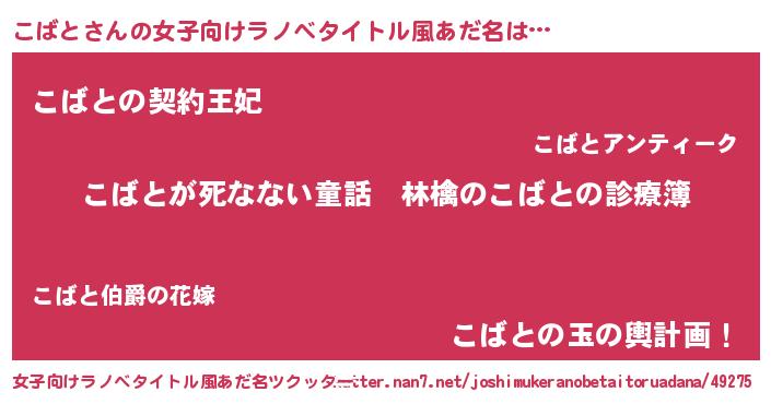 | 男性向けラノベタイトル風あだ名 | 『魔弾の王とこばと』 |
