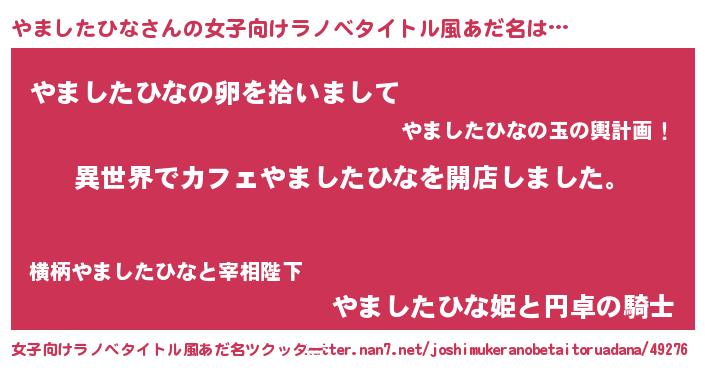 | 男性向けラノベタイトル風あだ名 | 『誰もが恐れるあのやましたひなが、ぼくの専属メイドになるようです。』 |