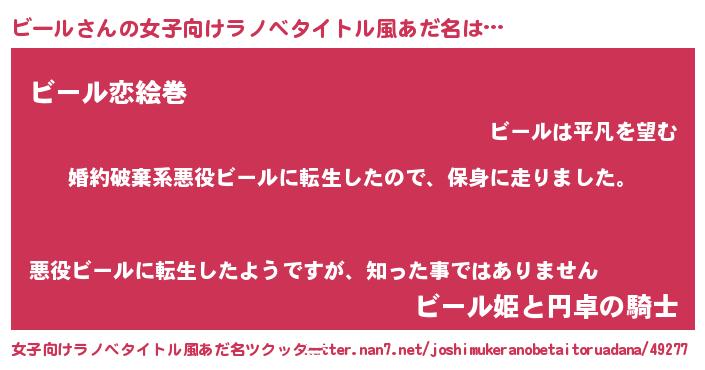 | ヒーロー風カッコイイあだ名 | 『友情の使者ビール』『スーパービール』 |