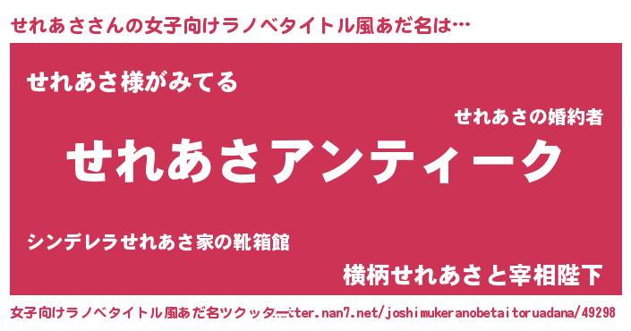 | 意味不明あだ名 | 『自称せれあさ』『せれあさフォーエバー』 |