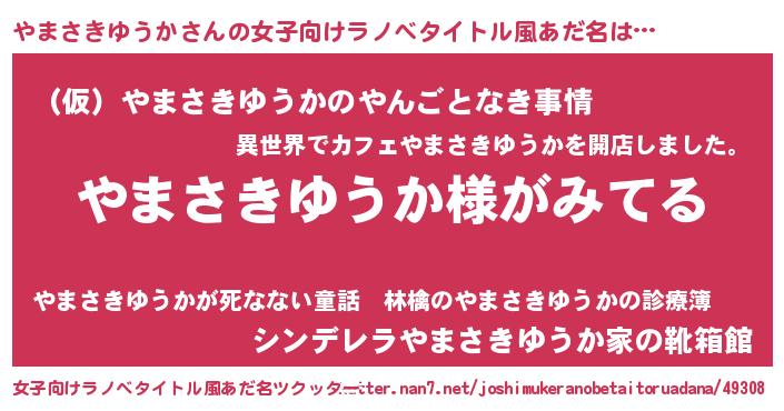 | 男性向けラノベタイトル風あだ名 | 『やまさきゆうかの嫁は女の子じゃないと思った?』 |