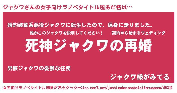 | 男性向けラノベタイトル風あだ名 | 『ノーゲーム・ノージャクワ』 |